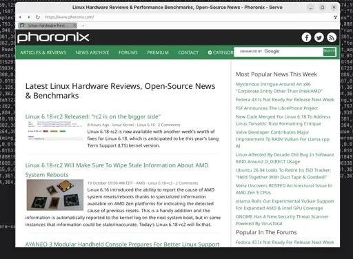 arrow-up11arrow-down1external-linkServo Shell Improvements For macOS & Android, More Servo Browser Engine Progressplus-squarewww.phoronix.comcm0002@libretechni.ca to Opensource@programming.devEnglish · 1 month agomessage-square0linkfedilink